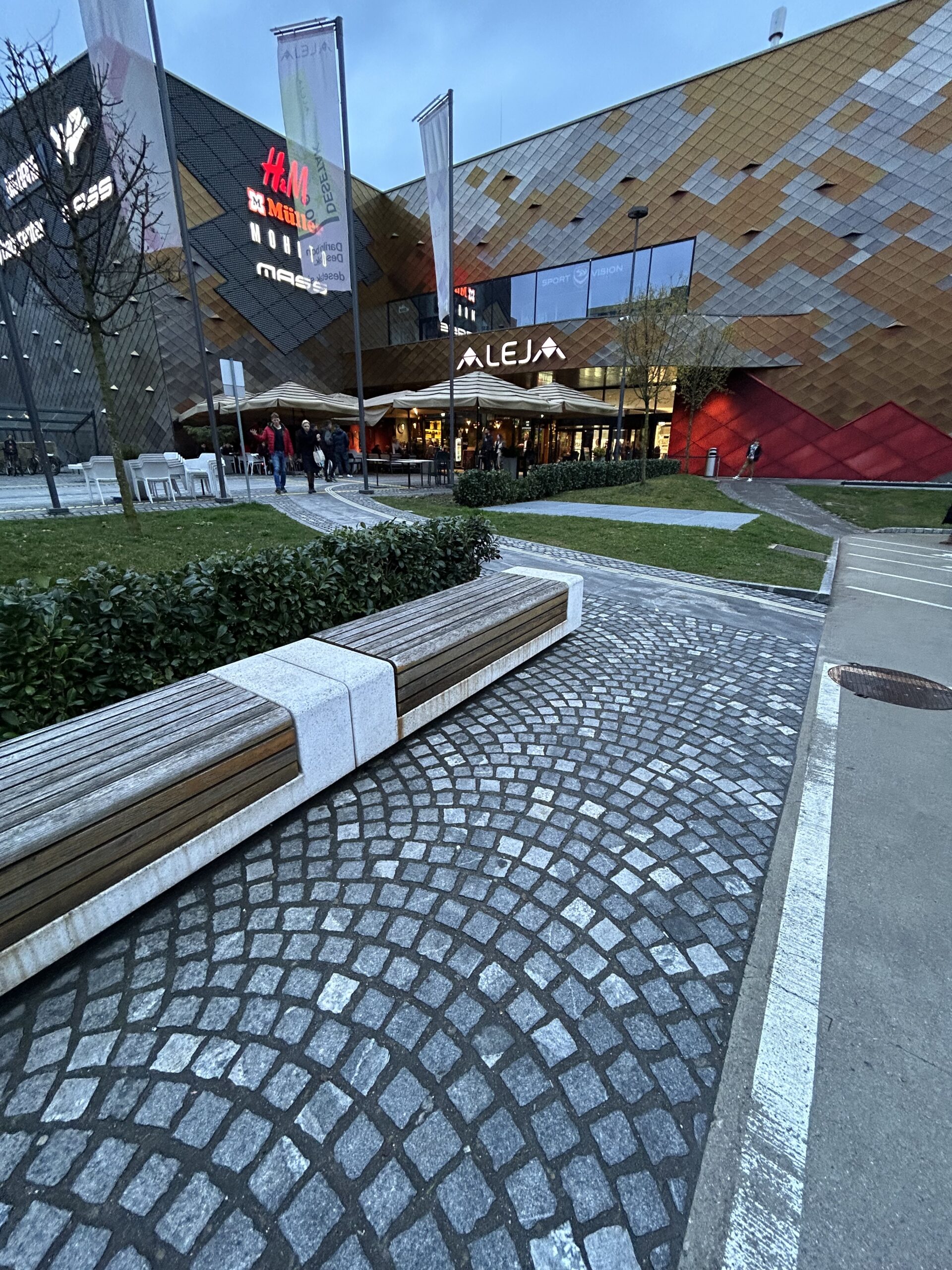 Dovozne poti, trgi tlakovani z granitnimi kockami, dvorišča, cestni rondoji, avtobusne postaje, nakladalne in dostavne površine.
